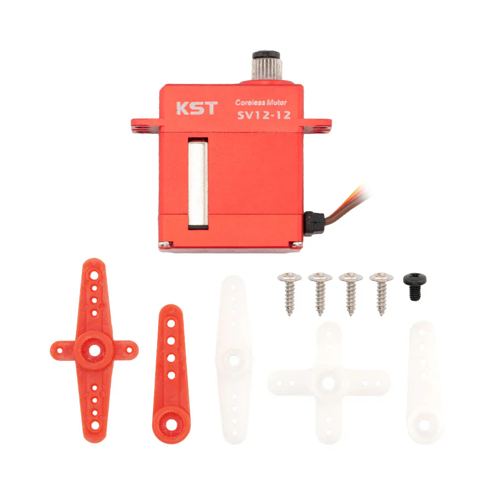 The SV12-12 Super High Voltage (SHV) micro servo is designed for demanding applications, making it ideal for RC helicopters, robotics, and other high-performance scenarios. Its standout features include support for 3S LiPo direct drive and high-voltage operation from 8.4V to 12V, delivering a powerful torque of 9.0Kgf.cm at 13.0V and a rapid no-load speed of 0.10sec/60°. This ensures quick response times and robust performance across a wide voltage range.