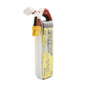 Tattu R-Line 550mAh 7.4V 95C 2S1P Lipo Battery Pack with XT30 plug has full capacity and discharge rate. It is a high discharge rate FPV racing lipo battery. The 95C gives you enough power under load. It is very compact in size and very light in weight. Works perfect with your Multirotor FPV from size 100 to 180.